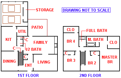 upstairs, tile in kitchen, breakfast room, bathrooms and utility